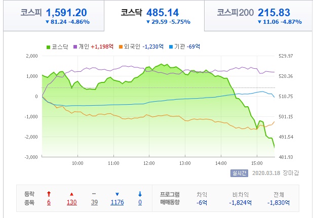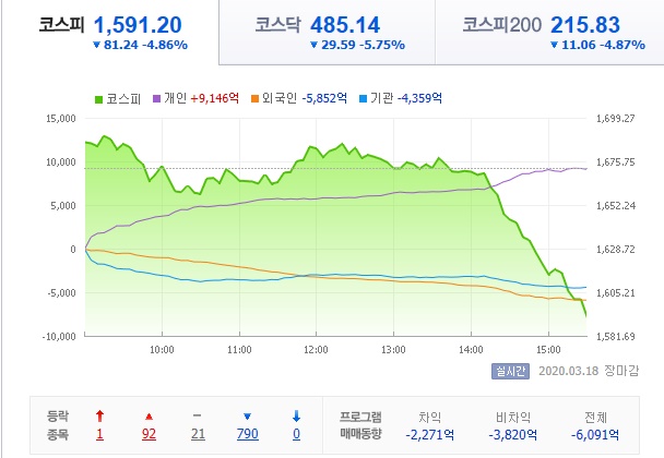 2020년 3월 18일 국내증시2020년 증시기록 2020. 3. 18. 18:28